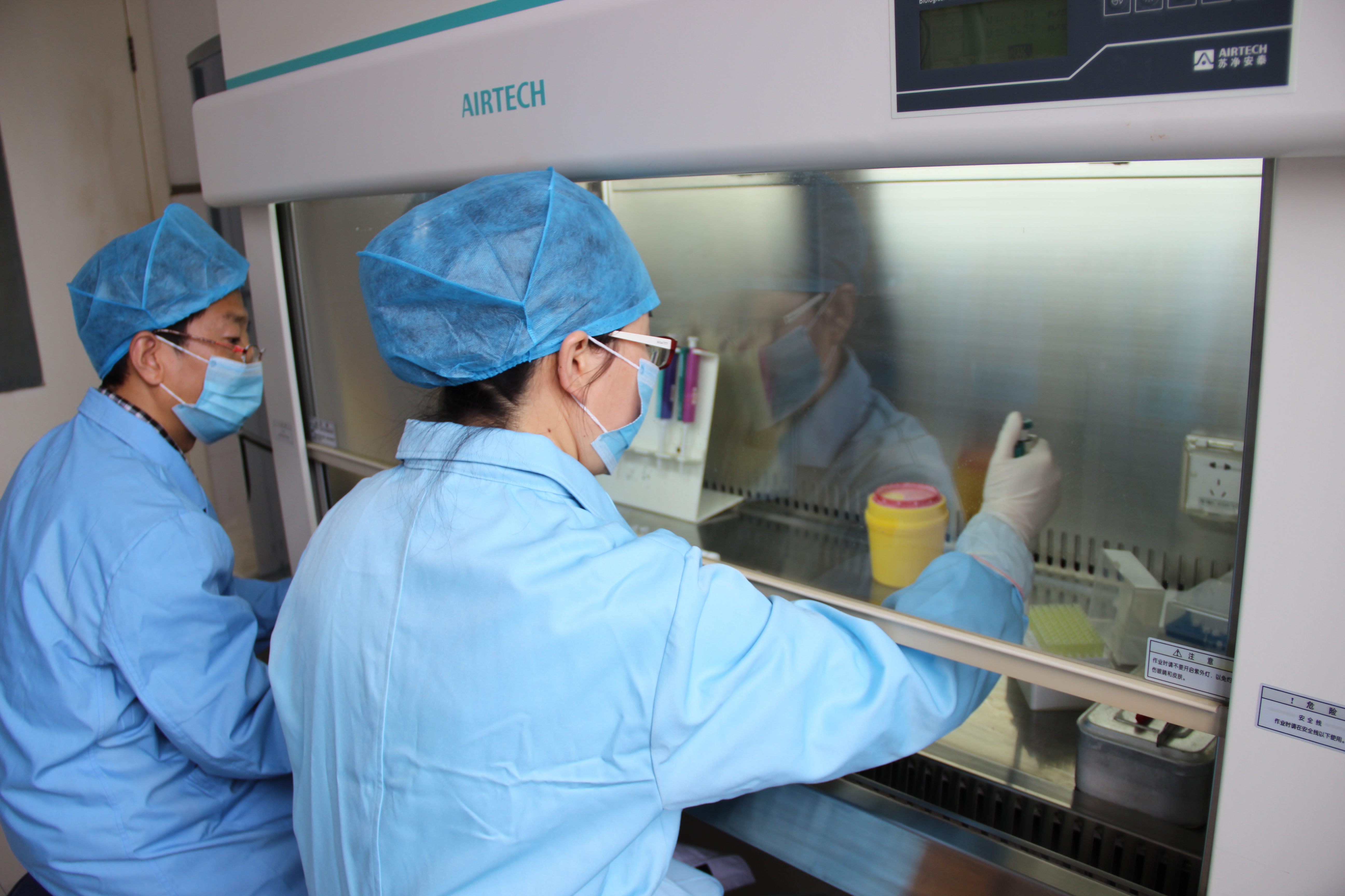 我院檢驗(yàn)科分子生物學(xué)(PCR)實(shí)驗(yàn)室緊跟精準(zhǔn)醫(yī)學(xué)的發(fā)展,嚴(yán)格按照ISO15189標(biāo)準(zhǔn)化建設(shè)、管理與操作。實(shí)驗(yàn)室成立于2006年,于2007年通過(guò)了衛(wèi)生部臨床檢驗(yàn)中心的實(shí)驗(yàn)室驗(yàn)收,并于2014年通過(guò)了復(fù)審,已獲得國(guó)家PCR實(shí)驗(yàn)室上崗證書(shū),現(xiàn)有5名工作人員。實(shí)驗(yàn)室負(fù)責(zé)人專(zhuān)業(yè)方向?yàn)榉肿由飳W(xué),曾在北京協(xié)和醫(yī)院和加拿大蒙特利爾猶太總醫(yī)院檢驗(yàn)科的分子生物學(xué)實(shí)驗(yàn)室進(jìn)修學(xué)習(xí)。實(shí)驗(yàn)室擁有ABI7500全自動(dòng)實(shí)時(shí)熒光定量PCR擴(kuò)增儀1臺(tái),德國(guó)Ependorf低溫高速離心機(jī)1臺(tái),以及國(guó)家標(biāo)準(zhǔn)PCR實(shí)驗(yàn)室系列配套設(shè)施。